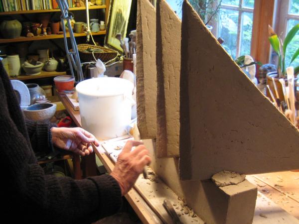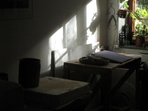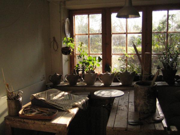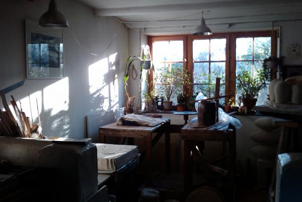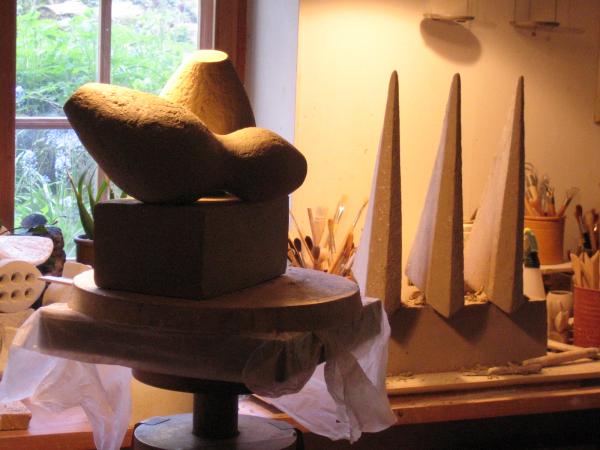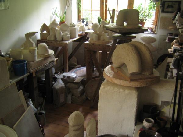 Dagene i mit værksted veksler mellem arbejdet med skulpturelle former og hånddrejede brugsting.