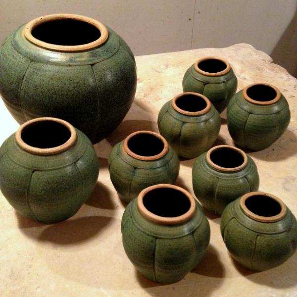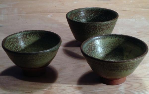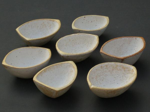 Små håndformede skåle, askeglasur.